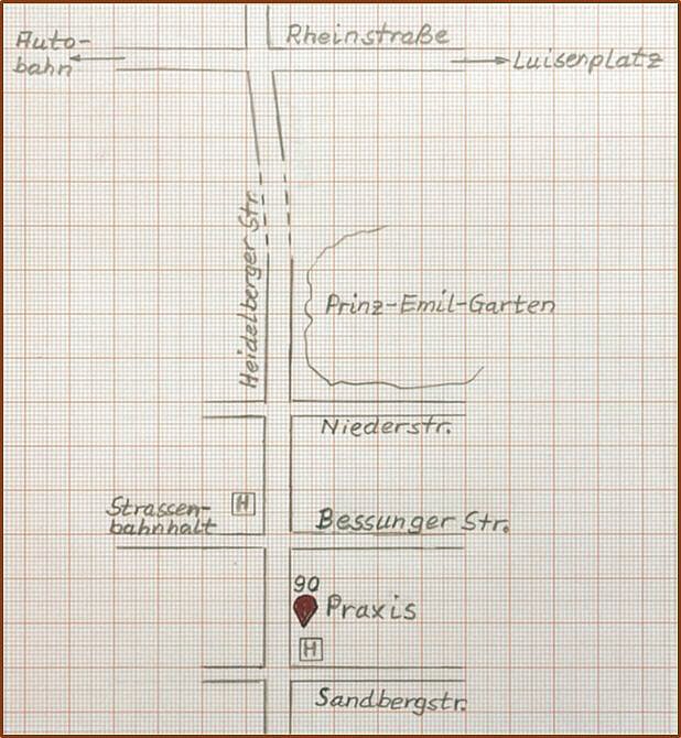 ÖPVN: Wenige Meter von der Praxis entfernt liegt die Haltestelle "Bessunger Straße",